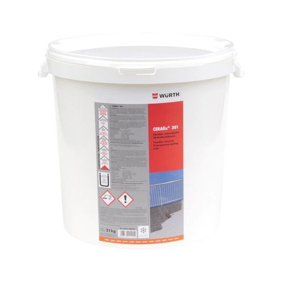 - CERAfix 301 ist ein hydraulisch erhärtender Dichtmörtel, der bis zur vollständigen Aushärtung in ungünstigen Fällen einige Tage lang vor Wasser- und Frosteinwirkung zu schützen ist.