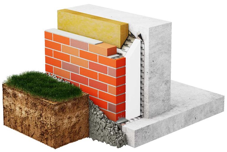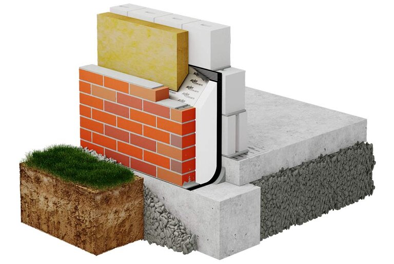 P-1200/272/15-MPA BS). Des Weiteren zur Abdichtung gegen Spritz- und Sickerwasser und Bodenfeuchte am Wandsockel (DIN 18533 Teil 1 und 2: W4-E)