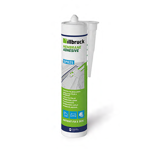 Dieser elastische 1-komponentige Kleber auf Hybrid-Basis ist für die Verklebung von illbruck Fensterfolien zur Herstellung von luft- und windsicheren Anschlüssen auf bauüblichen Untergründen, z. B. Mauerwerk, Beton, Putz, Porenbeton, Holz, Aluminium und vielen weiteren Untergründen geeignet. Er ist auch geeignet für diverse Klebungen, z. B. PVC-Verleistungen rund um die Montage, für den Ausgleich von Unebenheiten am Klebeuntergrund und für Abdichtungsarbeiten an Bauanschlussfugen (speziell für Fassadenfugen gemäß DIN 18540/ ISO 11600 empfehlen wir den SP525 Hochbaufugen-Dichtstoff).