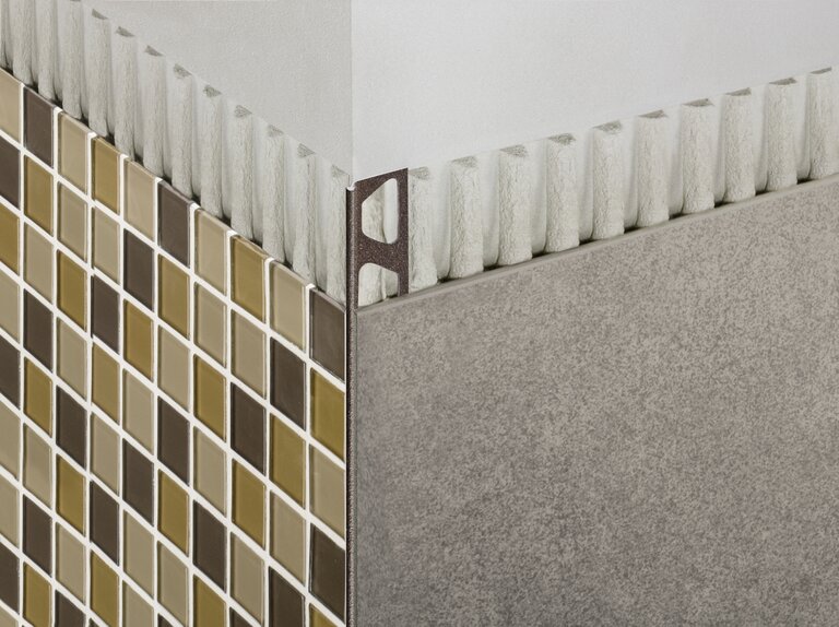 Schlüter-Aluminiumprofile - beschichtet/strukturbeschichtet finden Anwendung als Belagsabschluss an der Wand, Wandecken und Abschlüsse.