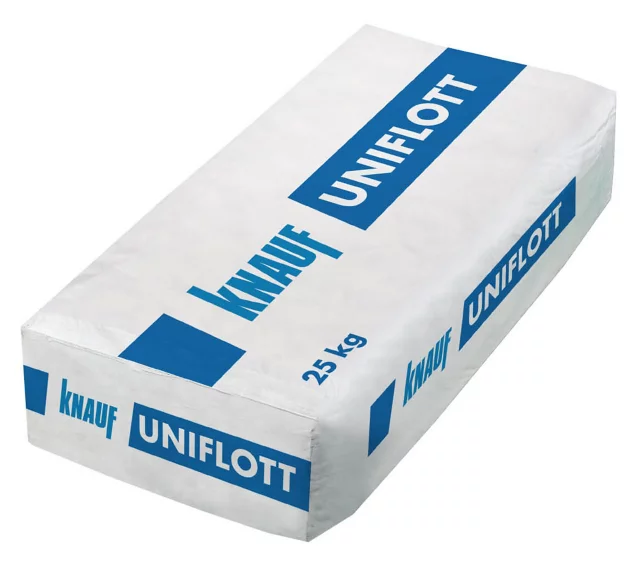 Knauf Uniflott 5 kg ist ein kunststoffvergüteter Spezialgips in Profi-Qualität, mit dem Sie Gipsplatten mit halbrunder Kante (Abkürzung HRK) und halbrunder abgeflachter Kante (HRAK) schnell und einfach verspachteln können – ohne zusätzlich Fugendeckstreifen einarbeiten zu müssen.