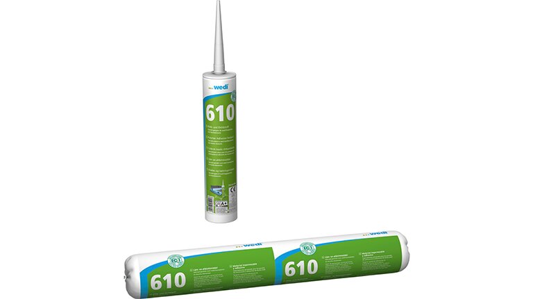 wedi 610 – Sicher ist sicher. Als vielseitig anwendbarer einkomponentiger Kleb- und Dichtstoff ist wedi 610 besonders für die wasserfeste Stoßverbindung u. a. von Bauplatten geeignet. Darüber hinaus besitzt er eine ausgezeichnete Witterungs- und Chemikalienbeständigkeit und ist zudem lösemittel-, silikon- und PCP-frei.